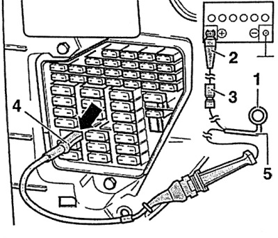Obr. 4A.14. Zařízení nezbytná pro kontrolu napájecího obvodu palivového čerpadla